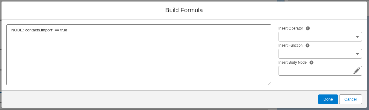 - If you encounter a list, you also have the option to add a filter on that list BEFORE clicking on “Select Node”. If you set the filter and it’s part of the JSON path, the filter will be included in the selected path and will be applied when the node is saved in the field.